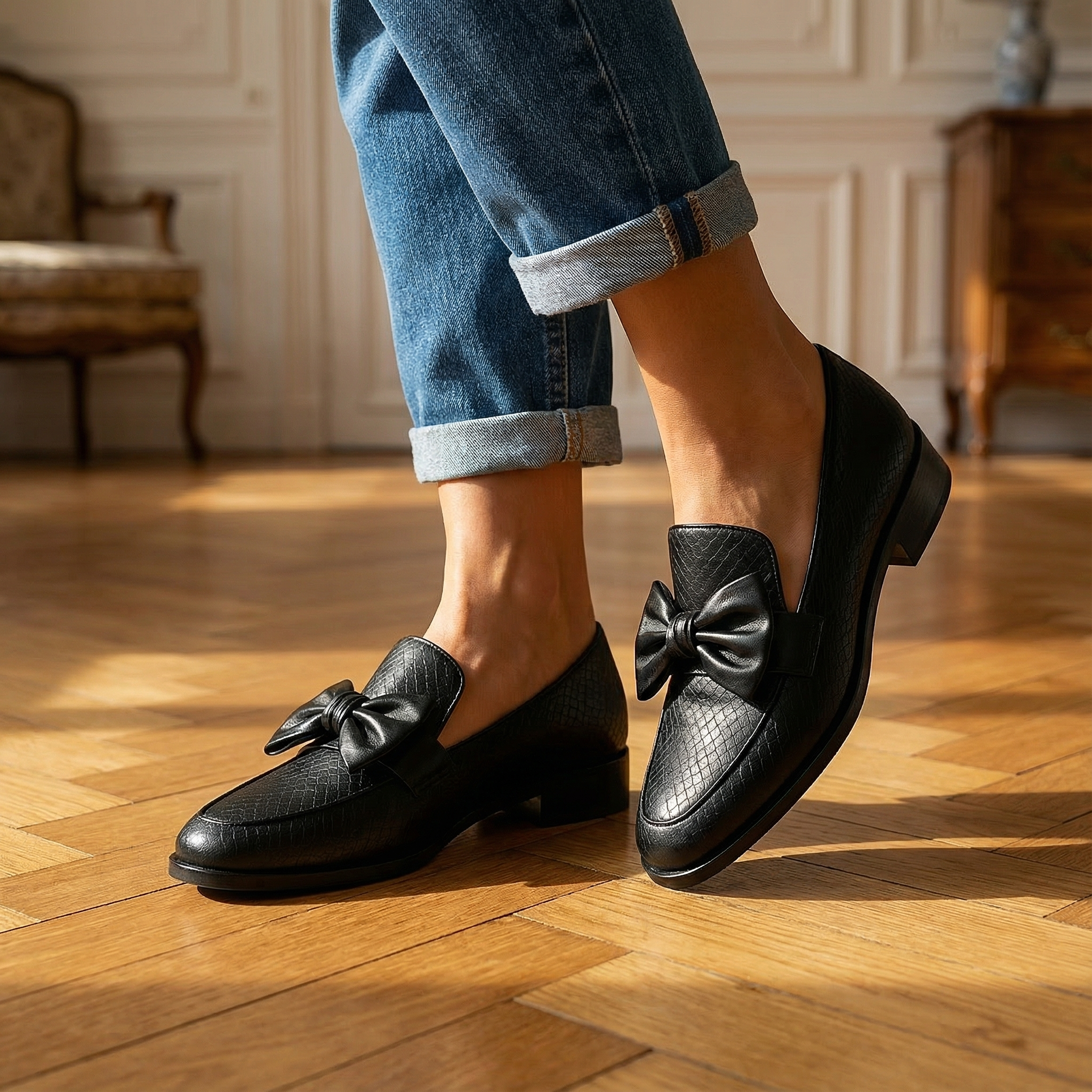 Bow Loafers Women – Slip On Shoes With Knotted Bow Detail & Pointed Toe