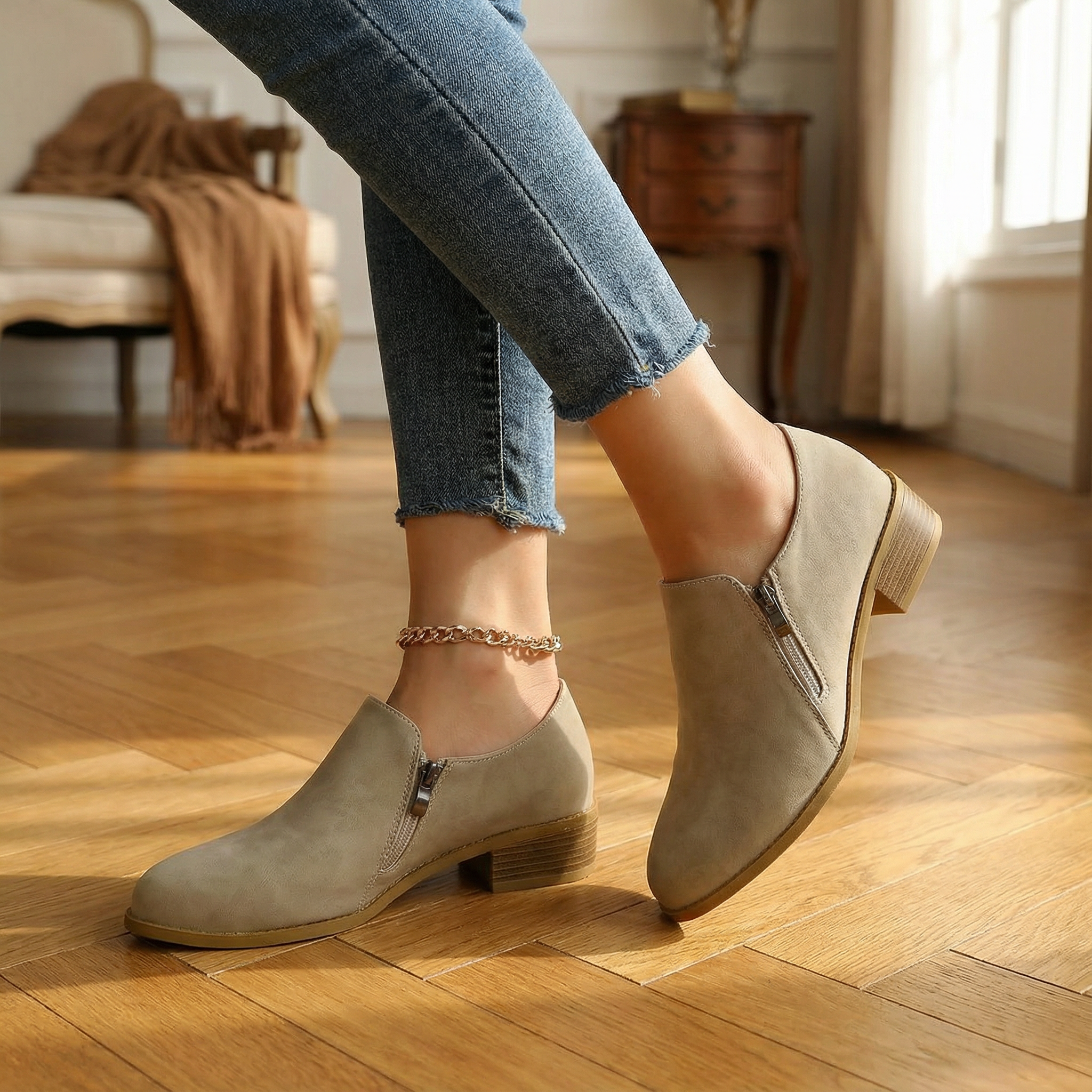 Zip-Up Ankle Boots | Comfortable Low Heel Stylish Side Zipper